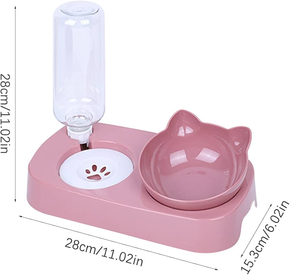 Cat Bowl, with Gravity Water bottle-Pink
