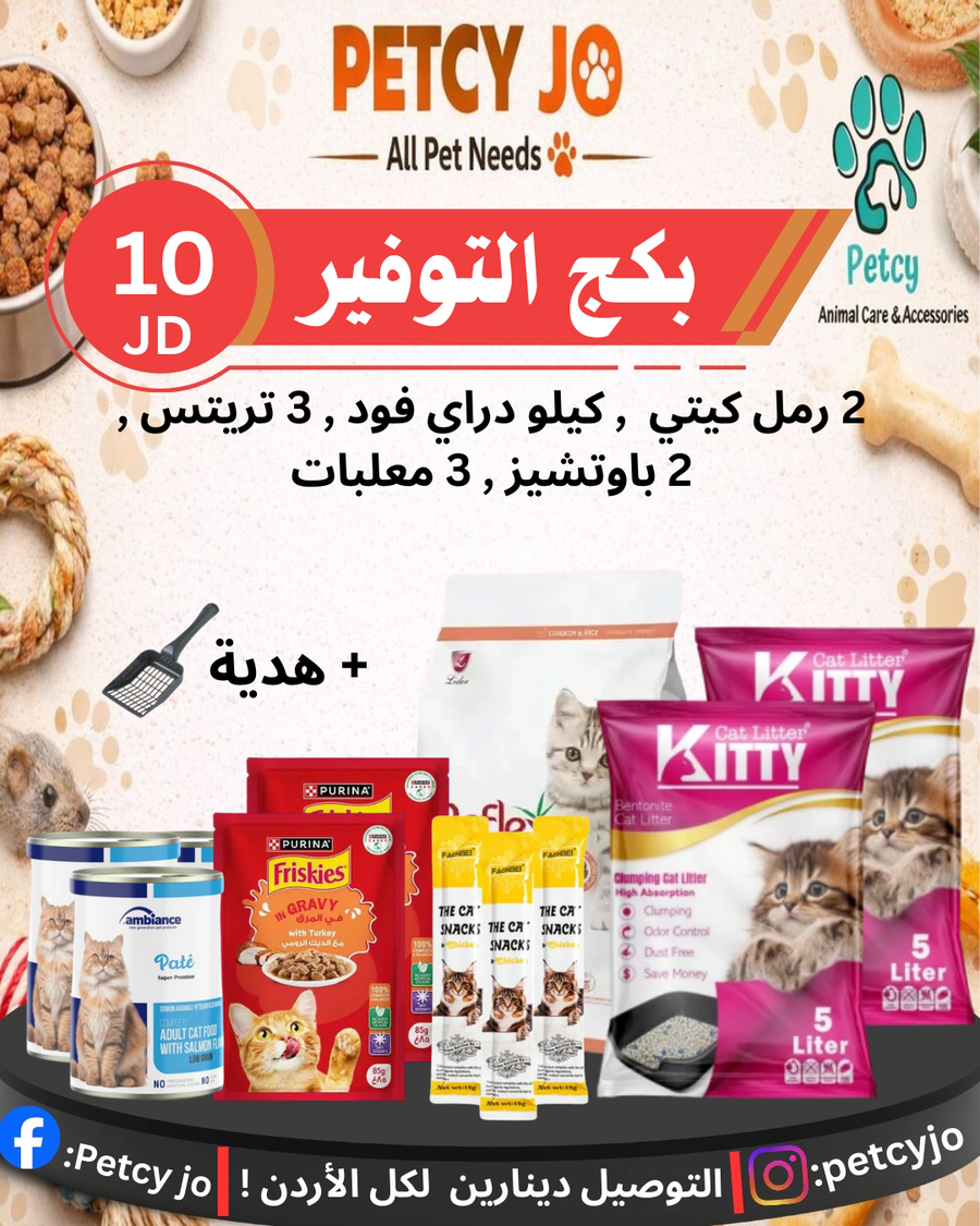 اثنين رمل كيتي , كيلو دراي فود , 3 تريتس , 2 باوتشيز , 3 معلبات + مجرود هديه
