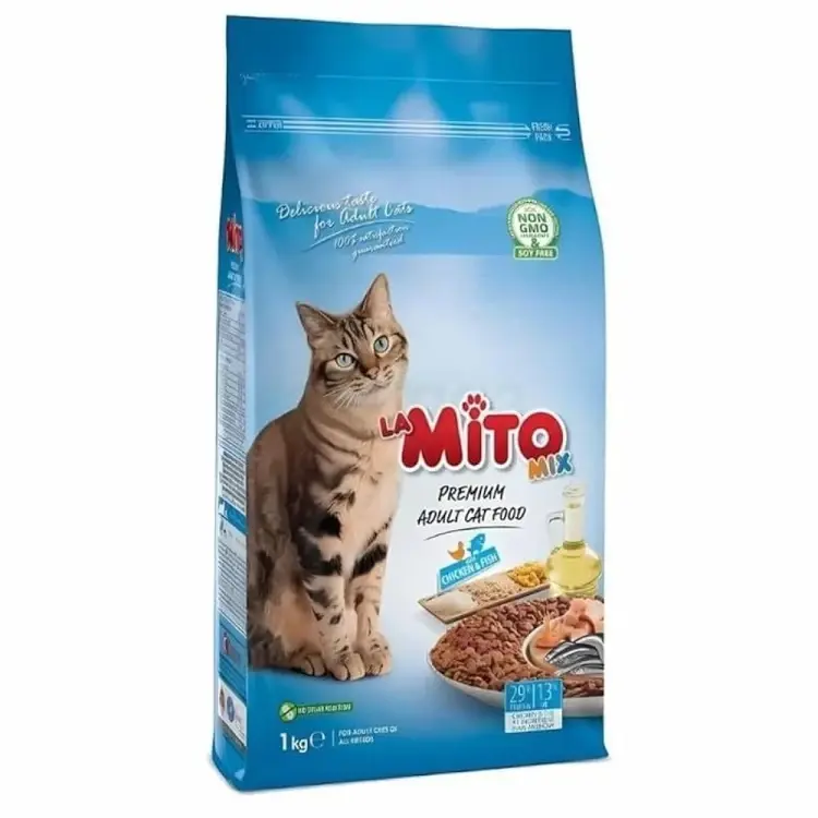 طعام جاف متكامل مخصص للقطط البالغة، يجمع بين مزيج لذيذ من الدجاج والسمك لتوفير وجبة شهية ومتوازنة يوميًا. يحتوي على نسبة جيدة من البروتينات والعناصر الغذائية الأساسية التي تساعد في الحفاظ على صحة الجسم ونشاط القط.
